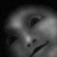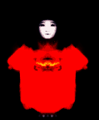 ざんばら髪で、黒い顔には目や口が無く、親指のような鼻が付いているのみである。